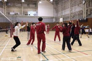 2コートに分かれ総当たり戦を行った後、順位決定戦を実施した。交流が目的とはいえ、1プレー、1試合ごとに一喜一憂。得点後に喜びを爆発させる姿、そして慣れない柔らかいボールゆえに、普段は絶対に起こり得ないミスで膝から崩れ落ちる姿が印象的であった。小学生や、アナリストなどのスタッフも参加し、経験値や性別、年齢の垣根を越えてバレーボールを楽しんだ。2試合目には、松井泰二男子部監督(平3人卒=千葉・八千代)らオレンジチームと、馬場泰光女子部監督(平8人卒=京都・洛南)ら青チームという、ここでしかない対戦カードが実現。松井監督のサーブで追い上げ、大いに盛り上がった。個人賞としては、秋重若菜(スポ新3=大阪・金蘭会)がMVP、荒尾怜音(スポ新4=熊本・鎮西)がベストレシーバーに選ばれた。