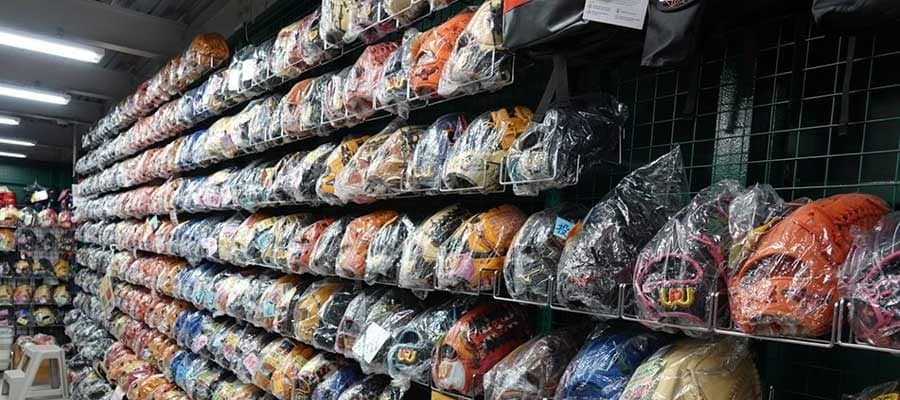 兵庫・尼崎市の「ミチイスポーツ」…入店して目に飛び込んでくる“グラブの壁”