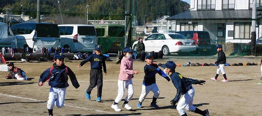「ダイヤ鬼」には、ダッシュや方向転換、相手との駆け引きなど野球のプレーにも生きる大切な動きが含まれている。そして、子どもたちが自らたくさん走る。鬼ごっこを楽しんでいるだけで、結果的にダイヤモンド5周分くらいの距離をあっという間にこなしている。