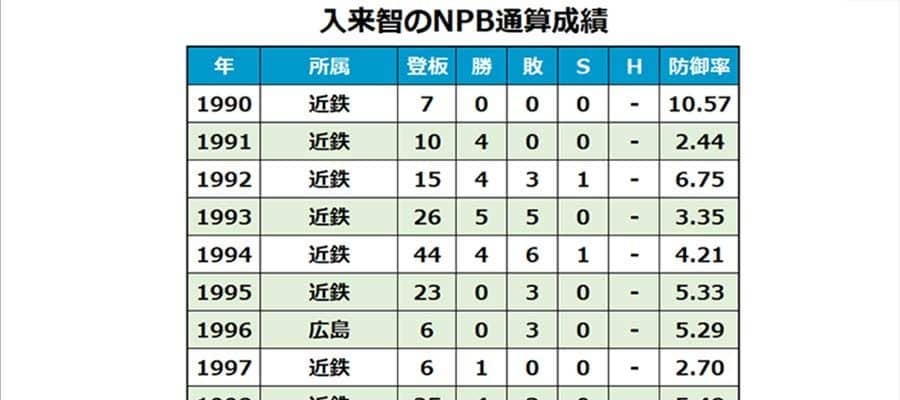 入来智さんは鹿児島実業から社会人の三菱自動車水島を経て1989年ドラフト6位で近鉄に入団。1996年途中に交換トレードで広島に移籍も、同年オフに近鉄へ復帰し、1998年オフには巨人へ移籍した。当時巨人には入来祐作投手がおり、兄弟選手が同時に同一チームに在籍して話題を呼んだ。