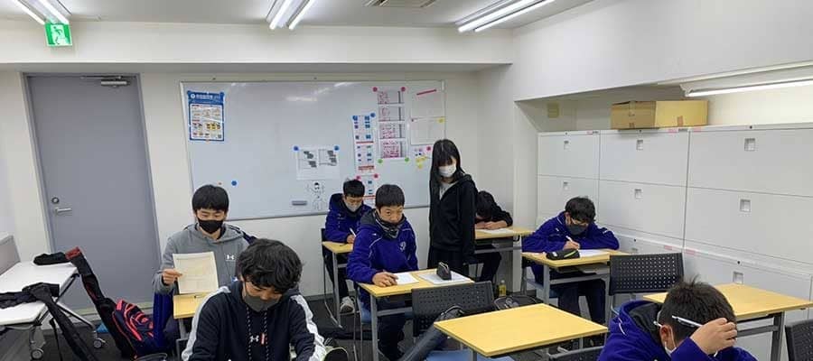 1日2時間程度の学習教室で最も重視しているのは内申点を上げること。5段階評価の通知表で9教科オール3の27以上を最低目標に、講師内で情報を共有している。宿題などの提出物に関しても忘れないように目を光らせている。