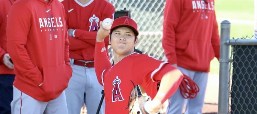 大谷はセットポジションに入った際に左足を半足ほど一塁側に下げて投球した。左上腕付近につけた「ピッチコム」で自らサインを出し、小さなテークバック。若手ローガン・オハッピーを相手にカーブ以外の変化球を交えて投球した。グラブは今季から契約したニューバランスの“斬新”なモデルを使った。
