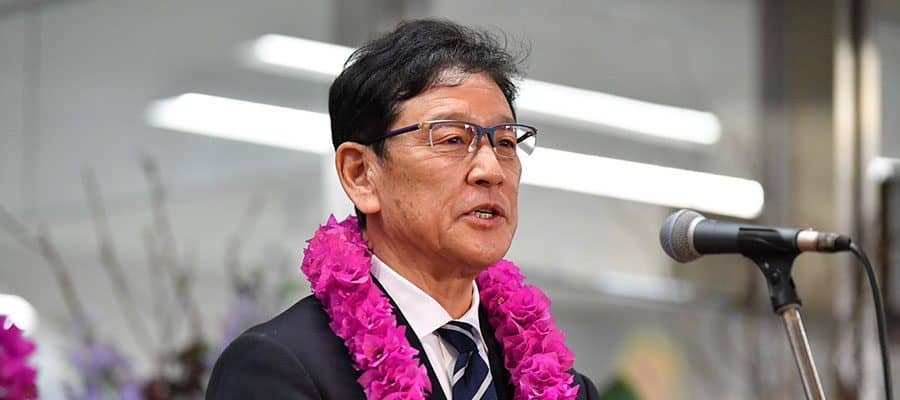 侍ジャパンの栗山英樹監督は16日、3月の「第5回ワールド・ベースボール・クラシック(WBC)」に向け、17日からキャンプが行われる宮崎に到着。宮崎空港で歓迎セレモニーが実施された。