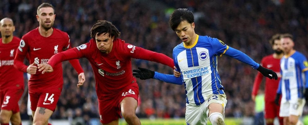 ブライトン&ホーヴ・アルビオンの日本代表MF三笘薫が、リバプールのイングランド代表DFトレント・アレクサンダー=アーノル…