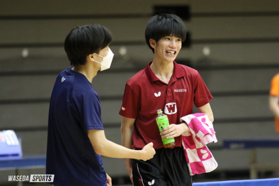 卓球に取り組む姿勢やプレーでチームをけん引してきた岩永は卓球部での4年間を『挑戦』と振り返った。「関東の大学なので高校の強豪たちがたくさん集まってさまざまな大会で強い選手と当たる中で、本気で日本一に挑戦したりリーグ戦優勝に向けて挑戦できた4年間だった」という。卒業後は卓球から離れるが、「色んな境遇の人が一生懸命頑張る部活。周りの部員に影響されて頑張れたことが良い環境だった」と、スポーツ推薦に限らず様々な境遇の部員が集まる早大だからこそ経験できた思い出を胸に、社会人生活に進む。後輩たちが日本一を達成することを願って。