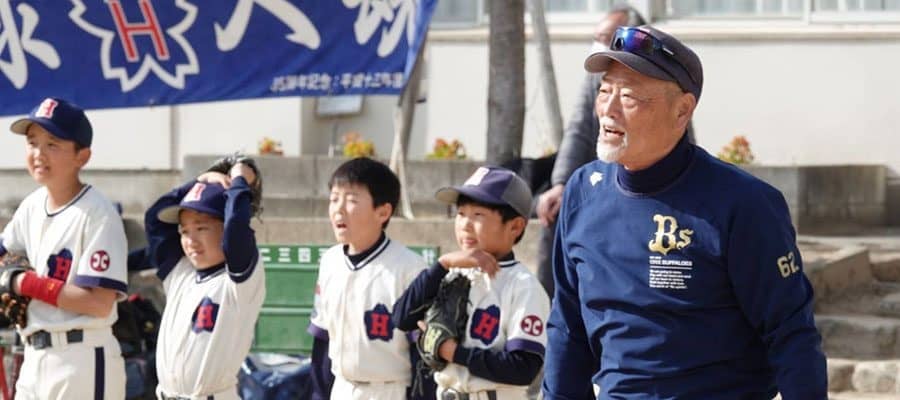一際目立つ白髪、白髭のノッカー。孫世代にあたる小学生たちを熱心に指導するのが幸地正直顧問だ。少年野球界に携わって35年。過去に同チームで監督を務め、ヤングリーグ「兵庫伊丹」ではコーチとして山田哲人(現ヤクルト)、中島宏之(現巨人)、山崎勝己(現オリックスバッテリーコーチ)ら多くのプロ野球選手を育てた。