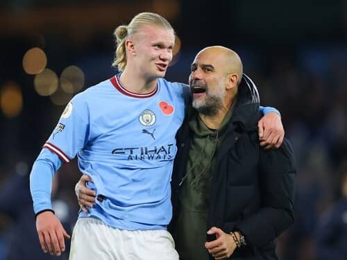 ハーランド(左)という強力な個人をシティに加えたグアルディオラ監督(右)。CL制覇なるか