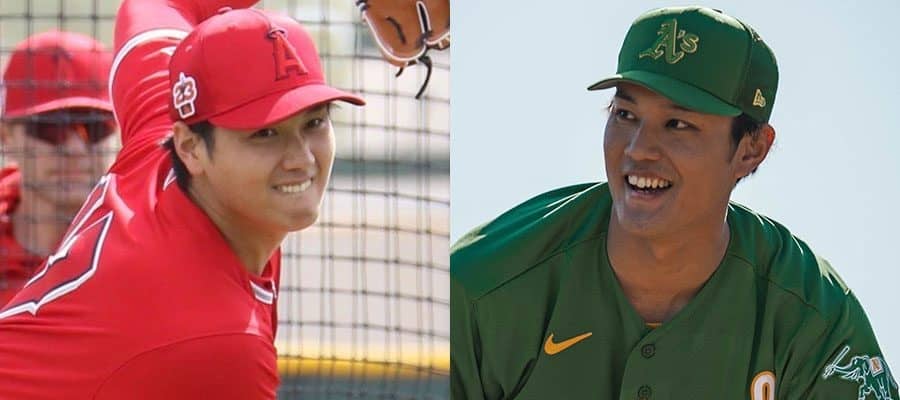 エンゼルス・大谷翔平(左)とアスレチックス・藤浪晋太郎【写真:小谷真弥、球団提供】