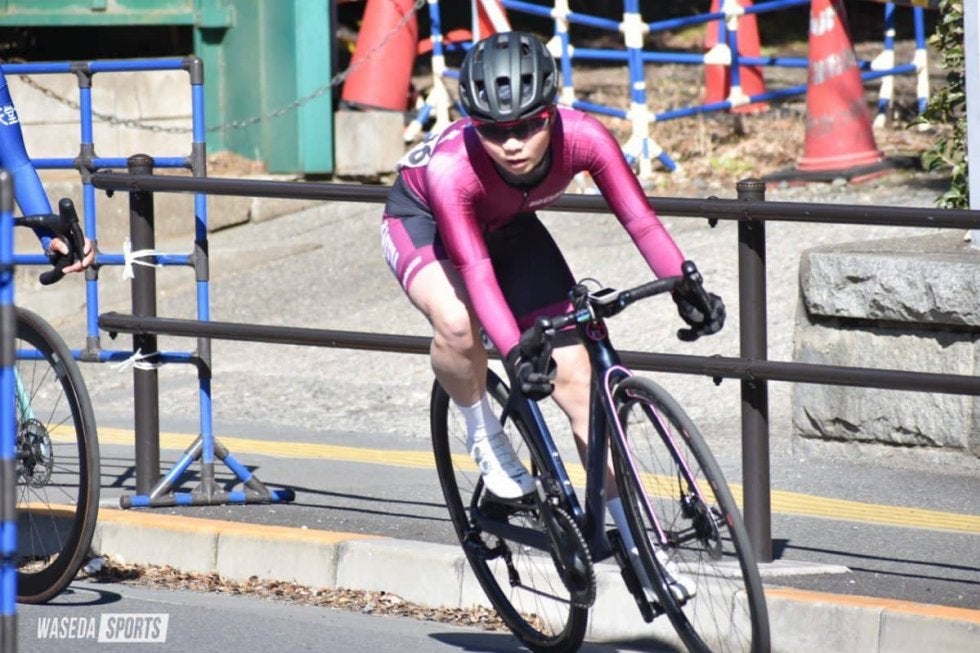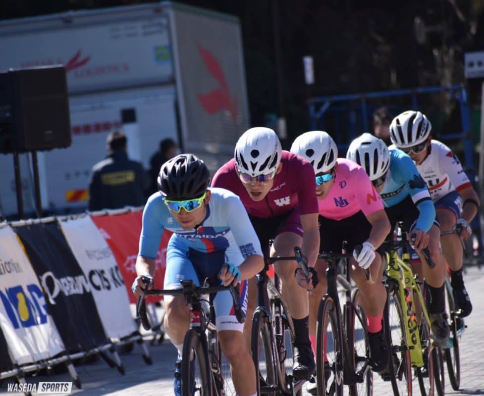 2月26日、強風が吹く中行われた明治神宮外苑クリテリウムに早大からは石田眞大(法3=東京・豊多摩)、石田唯(スポ3=京都・北桑田)、美甘星次郎(スポ3=鳥取・倉吉総合産)、中野大詞(スポ3=岩手・紫波総合)、大仲凛功(スポ2=愛媛・松山学院)、大蔵こころ(スポ2=愛媛・松山学院)が参戦した。個人では男女ともに1周1.5キロで8周、大学対抗では1.5キロを20週走る国立競技場が見えるコースで行われた今大会。気温は10度と寒い中行われた試合で石田眞が3位で表彰台へと登る。しかし、途中棄権となるなど思うような結果にはいかなかった選手もいた。