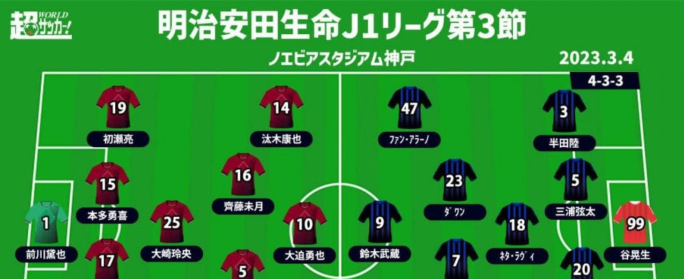 【明治安田生命J1リーグ第3節】 2023年3月4日(土) 14:00キックオフ ヴィッセル神戸(1位/6pt) vs …