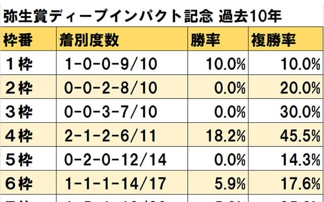 3月5日に中山競馬場で行われる弥生賞ディープインパクト記念(3歳・GII・芝2000m)について、過去10年の枠順デ…