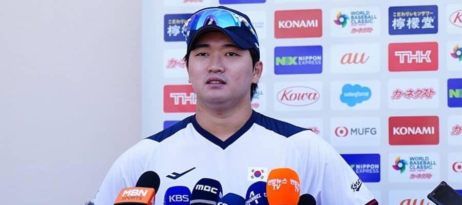 韓国代表の練習には日米合わせて50人を超えるメディアが集まった。2019年プレミア12、2021年東京五輪にも出場した守護神候補のコ・ウソク投手は「どこでも投げる。監督の指示に従うだけ。どこで投げようが、任されたところでベストを尽くすだけ」と言葉に力を込めた。(小谷真弥 / Masaya Kotani)