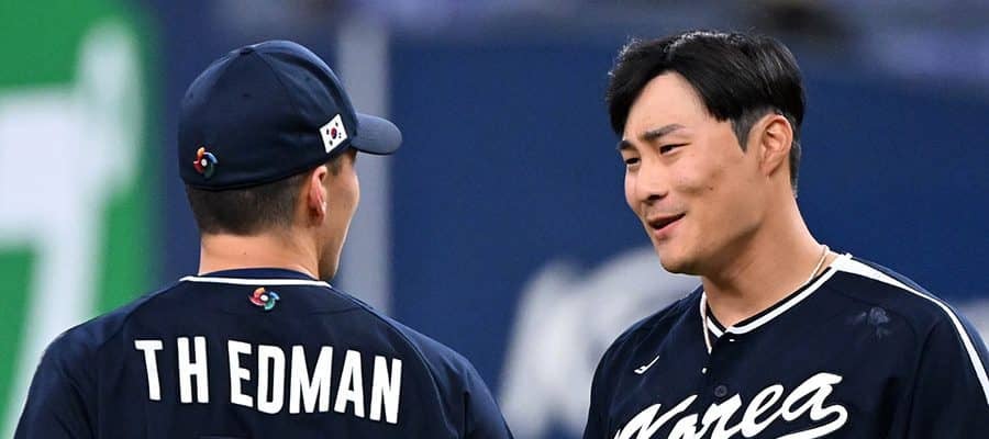韓国は守備の乱れが続く。6回のオリックスの攻撃では、2死一、三塁で池田陵真内野手の遊ゴロを、この回三塁から遊撃に回っていたキム・ハソン内野手(パドレス)がファンブルし、適時失策を犯した。韓国は結局1試合3失策と不安を残した。韓国系選手の代表入りで注目されたトミー・エドマン内野手(カージナルス)は「1番・二塁」で先発し4打数無安打に終わった。