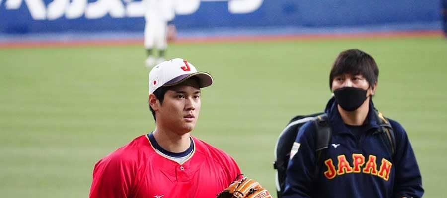 試合前練習に臨んだ侍ジャパン・大谷翔平【写真:荒川祐史】