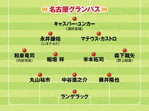 昨季J1で最少失点タイだった名古屋の基本的な戦い方は、堅守速攻。中谷進之介を中心とした3バックは熟成されており、ランゲラックの好セーブにも助けられ、失点を抑える計算は立つ。ポイントは、いかに奪ったボールを早く縦に入れ、攻撃に移ることができるか、だ。
