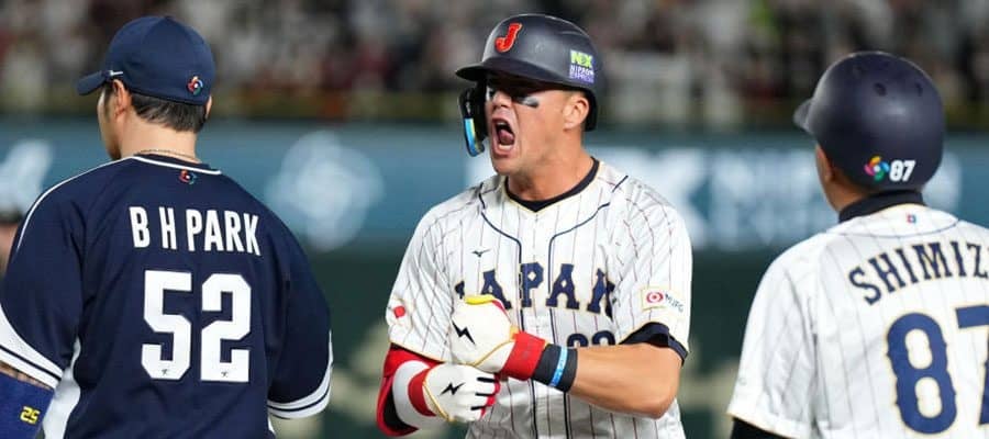韓国戦3回に適時打を放った侍ジャパンのラーズ・ヌートバー【写真:Getty Images】