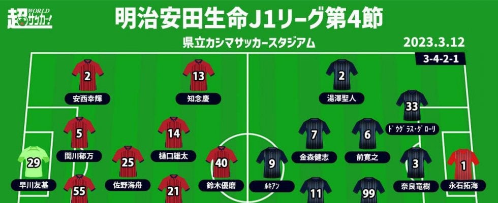 【明治安田生命J1リーグ第4節】 2023年3月12日(日) 15:00キックオフ 鹿島アントラーズ(3位/6pt) v…