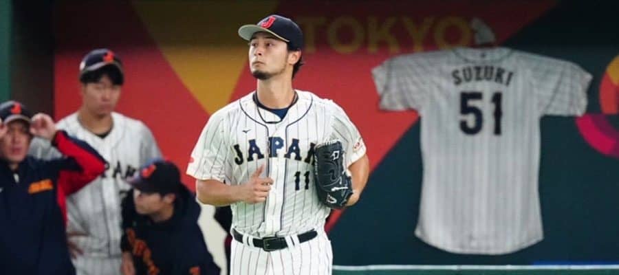 鈴木は合流直前に左脇腹を痛めて出場辞退…ベンチに「51」のユニホーム 野球日本代表「侍ジャパン」のダルビッシュ有投手(パ…