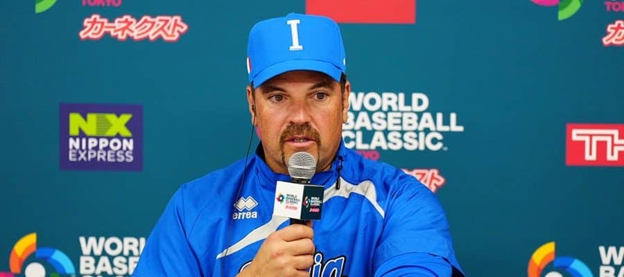 日本戦後、会見に臨んだWBCイタリア代表のマイク・ピアザ監督【写真:荒川祐史】