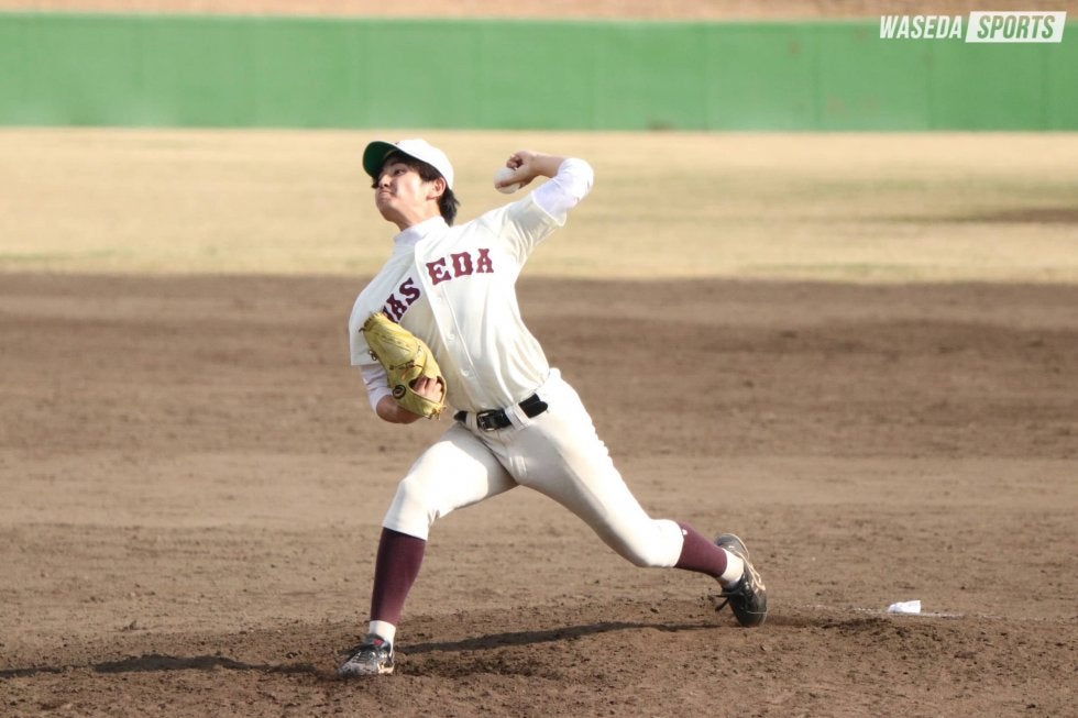 早大は2回戦に続き、この日も初回から動きを見せる。先頭の岡田和也(スポ3=東京・国学院久我山)の安打をきっかけに2死三塁の場面を迎えると、松永賢三(スポ3=東京・早実)が適時打を放ち、1点を先制した。先発は松村悠生(教3=神奈川・川和)。木村杯新人戦以外の公式戦では初登板となった。松村はたびたび走者を背負うが、野手陣の好守に助けられながら粘りの投球。4回までを無失点に抑えた。ところが5回、先頭打者に安打を許すと、失策と安打が絡み、1死満塁のピンチ。無失点に抑えたい場面だったが、同点の押し出し死球を与え、髙橋浩成(教3=東京・早実)に後続を託した。しかし、髙橋浩も相手の勢いを止めることができず、押し出し四球と適時打でさらに2失点。早大は追う立場となった。