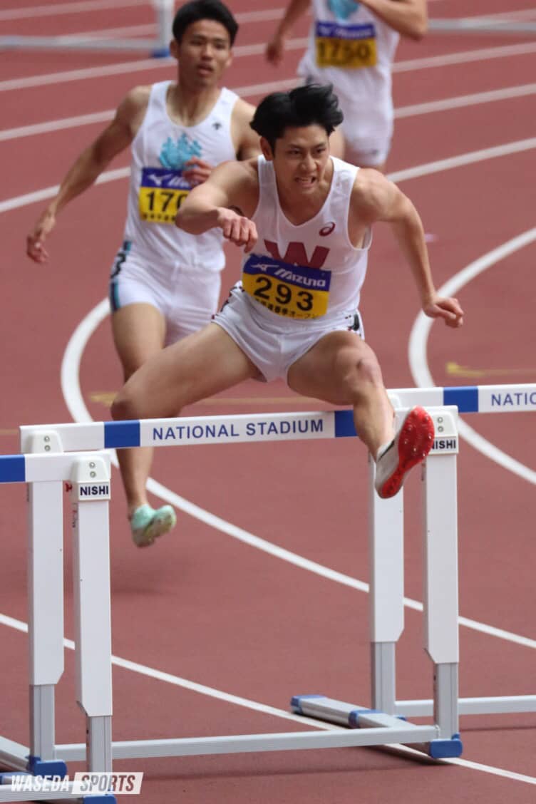 早大のお家芸、400メートル障害(ヨンパ―)の今季初レースが行われた。新井公貴(スポ3=神奈川・逗子開成)、田中天智龍主将(スポ3=鹿児島南)、金本昌樹(スポ2=東京・日大桜丘)の男子3名と、女子主将の川村優佳(スポ3=東京・日大桜丘)や、復帰戦となった清水羽菜(スポ3=東京・白梅学園)をはじめとする女子4名が出場。主将の田中が50秒17のタイムで男子全体1位となり、短距離シーズン開幕にあたり早大に勢いをつける結果を残した。
