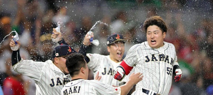 まさに筋書きのないドラマだった。1点ビハインドの9回先頭で、大谷翔平投手(エンゼルス)が気迫の二塁打で出塁。ベンチを鼓舞すると、続く吉田正尚外野手(レッドソックス)が四球で一、二塁とチャンスを広げた。そして迎えたのが、ここまで苦しんできた村上宗隆内野手(ヤクルト)。不振の主砲が思いを解き放つように左中間フェンス直撃の一打を放ち、代走だった一塁走者の周東佑京外野手(ソフトバンク)がサヨナラのホームを踏んだ。