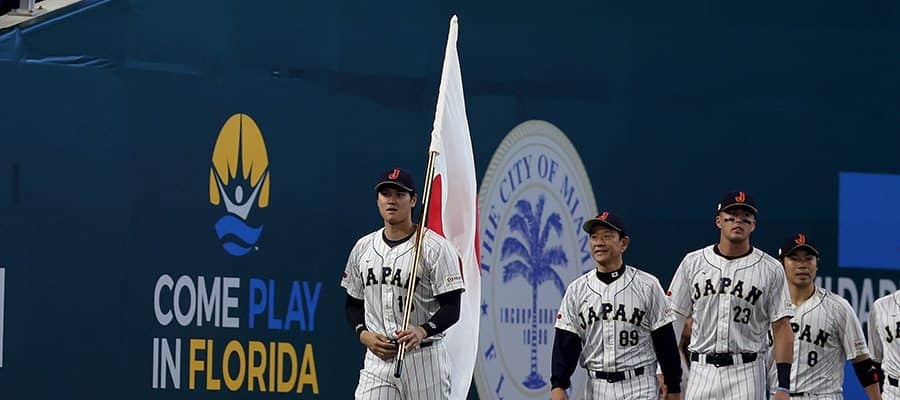 第5回ワールド・ベースボール・クラシック(WBC)の決勝、日本-米国戦が21日(日本時間22日)、ローンデポ・パークで行われた。試合前のセレモニーでは、日本の国旗を持った大谷翔平投手(エンゼルス)、米国の国旗を持ったマイク・トラウト外野手(エンゼルス)を先頭に各国ナインが登場した。