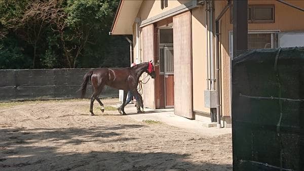 小林牧場出張厩舎到着時のマンダリンヒーローの様子 (C)東京シティ競馬