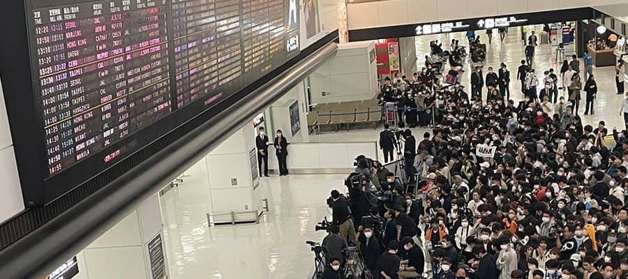 ワールド・ベースボール・クラシック(WBC)を制し世界一となった日本代表「侍ジャパン」を乗せたチャーター機が到着した成田空港にファンが詰めかけ、大騒ぎとなっている。午後3時過ぎの到着を前に、1000人近いファンが侍戦士を一目見ようと集まった。