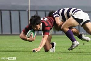 そんな奮起している最中、平田に度重なる試練が襲う。2年の頭、腰のヘルニア手術のためにチームを離脱することになった。数カ月に及ぶリハビリに耐え、やっとの思いで復帰した直後、立て続けに肉離れも起こしてしまう。結局、ほとんど試合に出場できないままシーズンが終わってしまった。「もっとやってやりたい」と強く思う反面、自分ではコントロールができない状況に長く苦しんだ。しかし、そんな中でも『早稲田のジャージをきて荒ぶるを歌う』という平田の思いが決してぶれることはなかった。練習に参加できなくても映像を確認し、復帰した時に最大限アピールできるように自分ができることに精一杯取り組んだ。