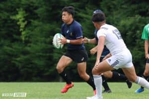 夏合宿の練習試合。相手のスペースをうかがう小西泰