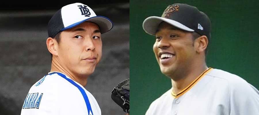 DeNA・笠原祥太郎(左)と巨人・オコエ瑠偉【写真:荒川祐史】