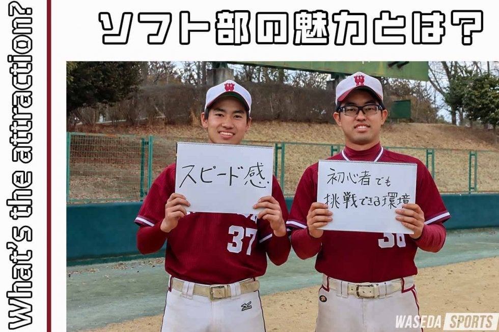 第1回は大学入学まで野球を経験していた川崎晴(スポ新4=東京・早稲田)と小出拓実(人新3=東京・杉並)のお二人にお話を伺いました。野球とソフトボールの違いや共通点など野球経験者の視点から様々なことを伺いました!