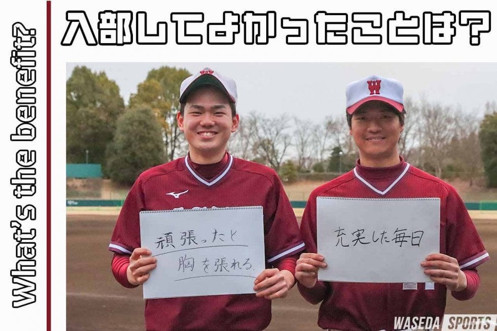 第3回は途中入部した渡邊幸太(人新3=千葉・市川)、田中宏二(人新3=大分舞鶴)にお話を伺いました!男子ソフトボール部は途中入部者も在籍しています。新しいことに挑戦することを選んだお二人に途中入部の経験から様々なことを伺いました!