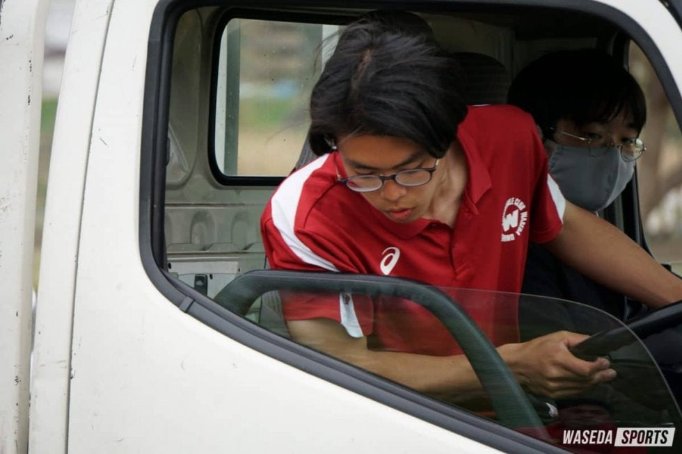 男子小型乗用Bには柳内滉洋(基理3=東京・早大学院)が出場し、タイムでは部門1位だったがペナルティによる減点があったため部門4位となった。「同乗減点でペナルティを取られてしまい、悲しい気持ちが強い」と柳内は振り返った。次に男子小型貨物Aに大矢根が出走した。表彰台圏内と思われる選手が後に控えているなか、「(ペナルティが)怖いところほど車速を落とさない」という走りで個人優勝を果たした。主将となって初の公式戦を迎えた近藤が男子小型貨物Bに出走した。多くの選手が失格やペナルティによる減点となるなか、減点を受けることなく個人優勝に輝いた。近藤は自分の走りを「良くもなく悪くはなかったが、全日本学生運転競技選手権につながる走りをすることができた」と振り返る。男子小型乗用Aには岩澤秀造(スポ2=東京・早稲田)が出走した。先輩やOBに積極的に質問をして練習を繰り返したという岩澤だったが、ライバルである慶大には及ばず部門2位につける。岩澤は「慶大が既に自己ベストと同等のタイムを出していたので、次を確実に狙って個人よりも団体を重視した」と振り返った。今大会では団体は男子のみが出場となるが慶大には届かず、男子団体準優勝となった。