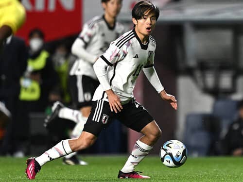 3月28日、大阪。コロンビア戦で、日本代表の久保建英(21歳)は後半14分から交代出場している。選手紹介のアナウンスでは、控え組ながら三笘薫に次ぐ歓声が湧いた。引き分けたウルグアイ戦で日本の攻撃は単調に終わり、コロンビア戦も三笘の先制点以降は鳴りを潜めていただけに、そのプレーは大いに注目されていた。