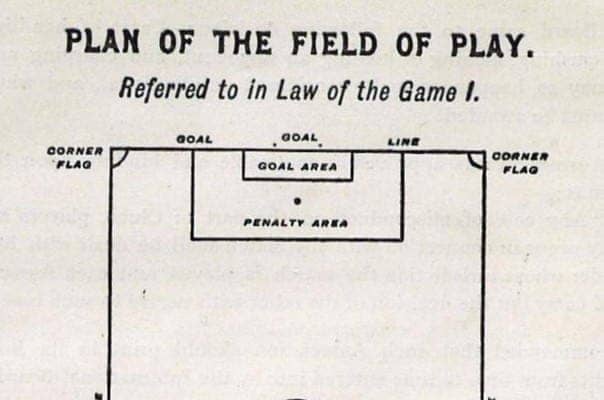 1902年のIFAB議事録に出たペナルティーエリアの姿。サッカーのピッチは、このときほぼ完成した。(c)IFAB