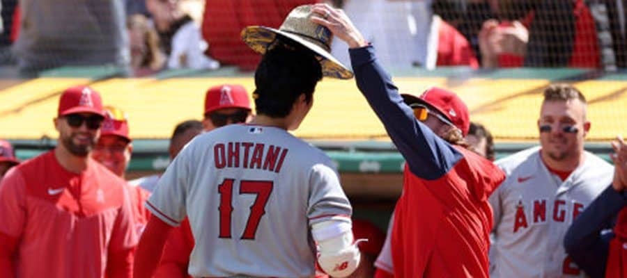今季1号を放った大谷、祝福で帽子をかぶせられると… エンゼルスが新たに始めた、本塁打を放った打者への祝福が、大谷翔平投手…