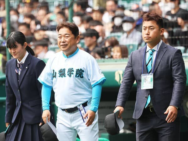 今大会、山梨学院の責任教師としてベンチ入りしたのが、吉田洸二監督の長男・吉田健人部長。監督と選手が親子というケースは過去に多数あるが、監督と部長(責任教師)が親子でコンビを組んで甲子園に臨むケースは意外なほど少ない。