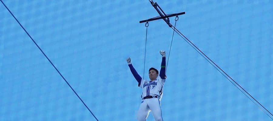 NPB史上初の約150m“超飛行”に成功 DeNA本拠地開幕戦…佐野が高さ30mから舞う