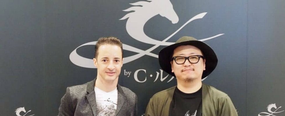 「CL by C.ルメール」ポップアップストアイベントに出席した C.ルメール騎手とグラフィックデザイナーの尾花龍一氏 (C)Hiroki Homma