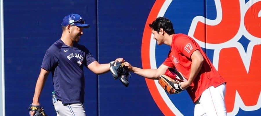 グラウンドでグータッチで挨拶…穏やかな表情で談笑■エンゼルス ー ブルージェイズ(日本時間8日・アナハイム) エンゼルス…