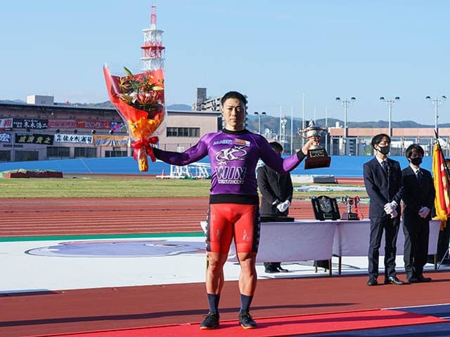 犬伏(湧也)君と町田(太我)君が後ろに位置を取ったのが想像していたものと違ったのですが、一番後ろにならないようにと思っていました。いろいろなレースパターンを考えましたが、どういうレースの流れになろうと、対応できるように心構えをしていましたね。最終1センター付近で、8番(才迫)と6番(宗崎)が外に浮いているところを平原(康多)さんが前に踏んで行ったので、それを追いかける形になりました。最終BSではスピードが一瞬、緩んだと感じたので、そこからは全力で行くだけ。今開催は、自分で風を切るレースもしたし、今日のようなレースもあり、さまざまなレース内容で4日間を走ることができました。自分の試したいこと、やってみたいこと、結果を残すことなど課題があった中、いい形で締めくくることができたので、次に活かせるようにしたいと思っています。