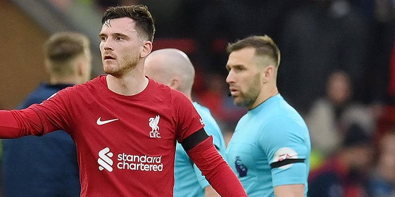 9日に行われたリバプールvsアーセナルで、副審がリバプールのDFアンドリュー・ロバートソンに肘打ちを見舞う前代未聞のトラ…