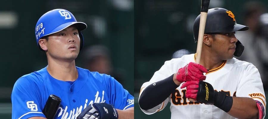 中日・細川成也(左)と巨人・オコエ瑠偉【写真:矢口亨】