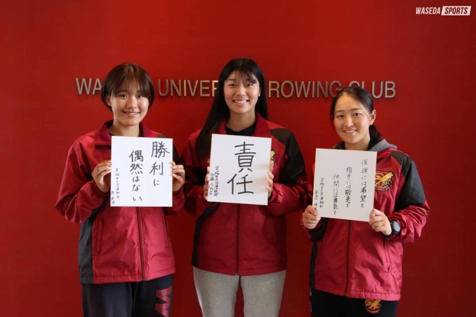 第2回は、女子舵手付きフォアのクルーから加藤沙也花女子主将(スポ4=愛知・猿投農林)と郡磨璃女子副将(スポ4=東京・文京学院大女)と長谷川理実女子副将(政経4=東京・早実)の3人が登場する。ボートを始めたきっかけから、早慶戦33連覇に懸ける思いなど、さまざまな話を伺った。