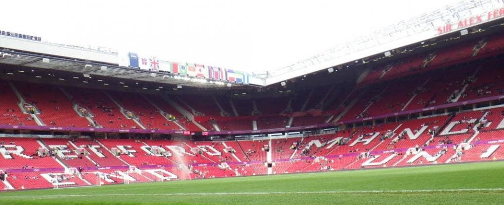 マンチェスターのオールド・トラフォードスタジアム、2012年。本来なら、レンガと同じ高さにピッチがあるのだが、異様に高くなっている (c)Y.Osumi