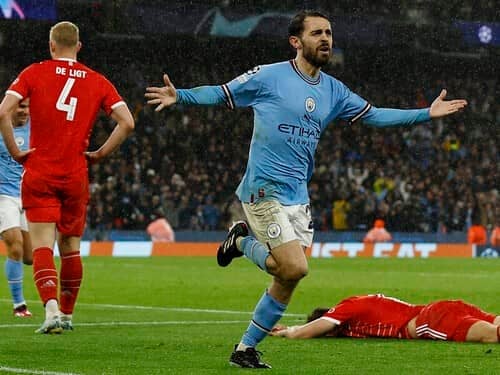 バイエルン戦で2点目を決めたベルナルド・シウバ(マンチェスター・シティ)