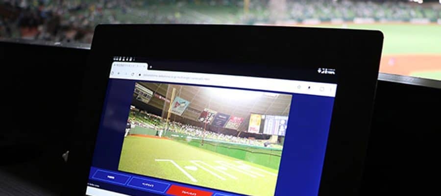 タブレット端末が設置されたネット裏グループ席を今季から販売