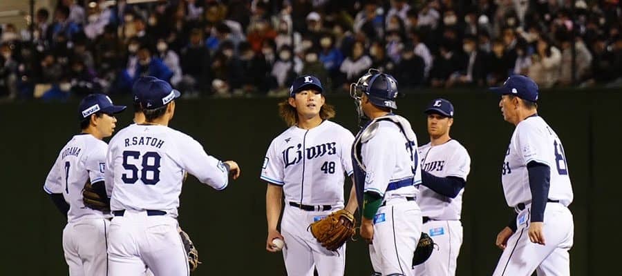 マウンドに集まる西武ナイン【写真:荒川祐史】